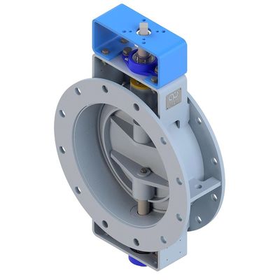 Double offset dampers are widely known as high performance valves. Particularly suited for low pressure flows, total tightness requirements and temperatures up to 260°C. Tightness is guaranteed by perfect coupling of the self-adjusting gasket inserted on the perimeter of the blade and the stainless steel seat. Robust design and high-quality materials ensure long life, low operating torque values and low friction. Double eccentric valves are leak-proof in one direction only. Flow direction is indicated by the arrow. Hydrostatic tests are performed as standard according to EN 12266.