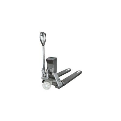 Pallet truck weigher, durable and reliable adapted to a accurate and fast weighing. Made in stainless steel. 4 weighing load-cell made of nickel-plated steel. Protection : IP67.