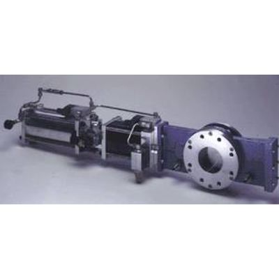 The quick closing valve is part of an active explosion isolation system. In the event of ignition, it is activated by solenoid valves. Air flows out of a compressed air reservoir into the drive cylinder, closing the slide valve within milliseconds. Both the flames and the spread of pressure are effectively stopped. After having been triggered, the slide valve can be reactivated without needing a repair, and because of its non-destructive operation it can be validated at any time.