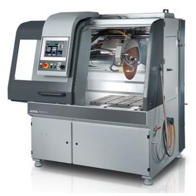 The universal wet abrasive cut-off machine Brillant 255 with manual travel and fine dynamic cutting allows precise, soft touch cutting with 2 axes in arbitrary directions (Y/X axis) and can be equipped with a manual Z-axis for parallel serial cuts (option).