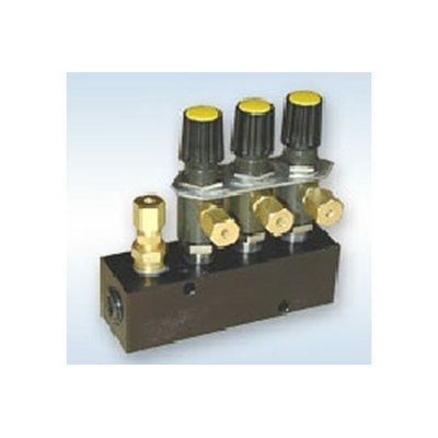 Compact Gas Manifold for Helium Sparging of 3 or 4 HPLC solvents simultaneously. The gas manifold features: Three or four needle valves for individual and fine control of Helium flow to each of three or four reservoirs. Three way solenoid controlled shut off valve. The needle valves need not be used as shut off valves and the manifold is vented when the Helium flow is shut off. Fittings for 1/8" metal or plastic tubing.