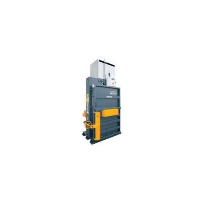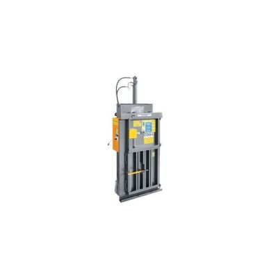 Vertical hydraulic compactor MG 50 T.V.E. for formation and baling of waste and recyclable material such as cardboard, nylon plastic, big-bags, fiber glass and insulation in general, PET bottles Tetrapack, leather rags, generic trash etc... MG 50 TVE has the compaction chamber completely closed, loading door and bale expulsion door are openable. The electrical panel is positioned in high, the control buttons are located on the side. It is front-loaded.