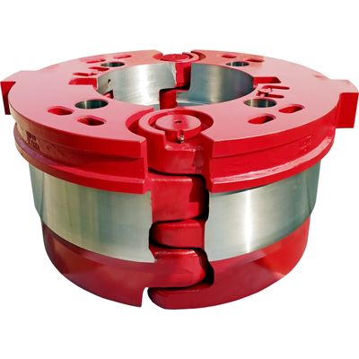 When the casing is run into the drilled hole it is desired that casing string must be aligned with the center of the hole and casing can be rotated during cementing operations. This ensures placement of cement slurry uniformly around the casing for a good cement bonding between casing and borehole. Casing Bushing is a split bushing and is also interchangeable with Varco Casing Bushing. Casing Bushing is designed to handle string load upto 500 ton. Different sizes of insert bowls can also be used in these bushings to lower different sizes of casing pipes.