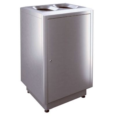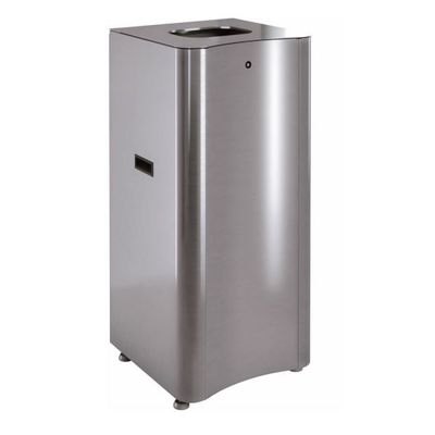 Self-supporting, curved fronts and flat side panels made of stainless steel, secured with an internal construction of galvanized steel, provide great stability. The tops funnel-shaped openings guide waste into the inner liners and are also an elementary part of the fire protection (patented and certified).