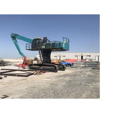 1. Horizontal Extension : 14000 mm 2. Pump Capacity : 2x160 lt / min 3. Operating Pressure : 320 bar ( 280 bar for the polyp ) 4. Oil Tank Capacity : 350 lt 5. Electric Motor : 75 kW 6. Turret Revolution : 0-8 rpm 7. Operating Weight : 30-35 tons 8. Swivel Angle : 360° 9. Vertical Angle : 76° 10. Polyp (Grab ) Capacity : 450 liter 11. Polyp (Grab ) Rotation Angle : Infinite 12. Polyp (Grab) Teeth Quantity : 5 Stationary , Crawling , Mobile and Tyre versions of the material handler are avaliable upon request.