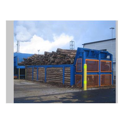 The SCC Storage Cross Chain Conveyor enables storing and conveying of round wood and slabs, loaded by crane. The conveyor is executed with a closed bottom plate, integrated side wall and driven chains. Different singularizers can be mounted downstream from the SCC: LS Log Singularizer separates logs by inclined installation and increased conveying speed. SBS Slab Bundle Singularizer is executed as a movable table beneath the SCC. The bundles can easily be opened in extended table position. The loose slabs are fed to the line by retracting the table.