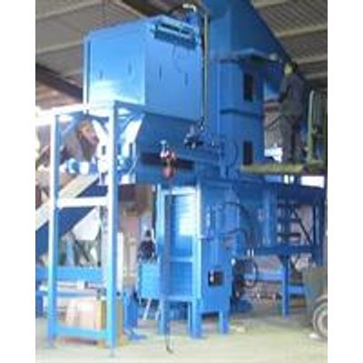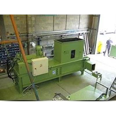 Shavings are fed to the machine by means of the Feed Hopper provided. This is normally extended by several metres when installed to give a reasonably large storage area above. This will cope with local surges and smooth out the feed rate to the Baler. Each bale is made by one stroke of the compression ram, which is activated by an Infrared sensing device in the Hopper. When this ram has reached the fully forward position (bale fully compressed) an illuminated push button shows a signal in the remote panel at the operator’s station. Having first ensured that a Polythene bag has been fitted to the ejection spout, the operator pushes the illuminated button and the bale is automatically ejected into the bag by the ejection ram.