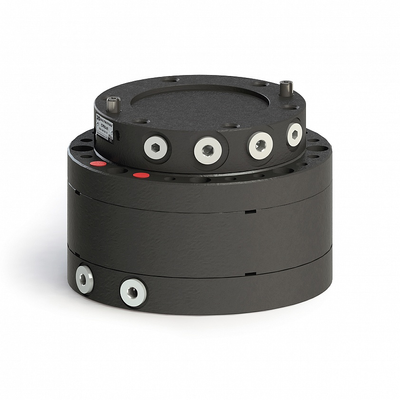 Patented axial boxer-type piston rotator. Version with hose outlet connections to the side. Suitable for poly-grapples, sorting grabs, high capacity grapples and other attachments. CPR rotators are ideal for working conditions where flat-body rotator models and high torque is required. Max axial load static - theoretical maximum load (without accelerations) for link mounted applications.
