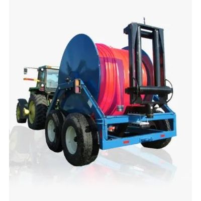 Open drum hose reels. 3 point hitch, single axle, or tandem axle. Several sizes available. Can hold from 3 to 10 hoses. Over 1 mile of hose all on 1 reel. Only one person required to layout and pick up hose.