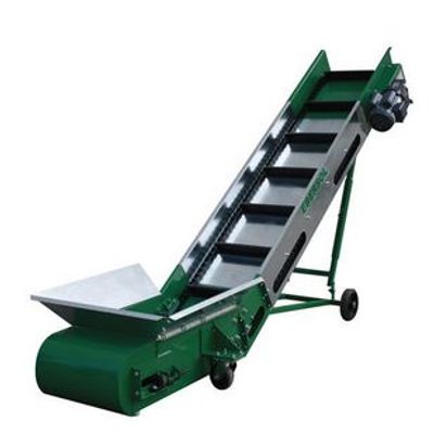 The Ebersol Double Chain Feed Conveyor is designed for use by dairy and beef farmers, in addition to other non agricultural applications requiring lightweight, easy-to-move conveyors. The double chain can be formulated with an optional bend, which provides a flat section that fits below the low discharge area of the TMR mixer. It then inclines up to the required height of the feed cart, in a “hockey stick” configuration.