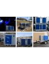 Mobile electric pumps in stackable frames or sound attenuated canopies are equipped with a lockable compartment. This is where