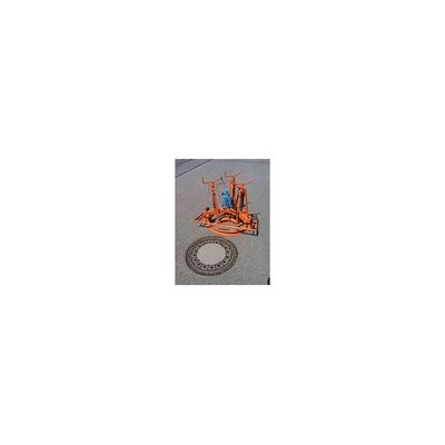 Manhole frame lifter The new, patented three double chisels achieve a larger contact area and thus a tensile load distribution. The chisels can be easily pressed in under the shaft frame using the hydraulic system at the top.