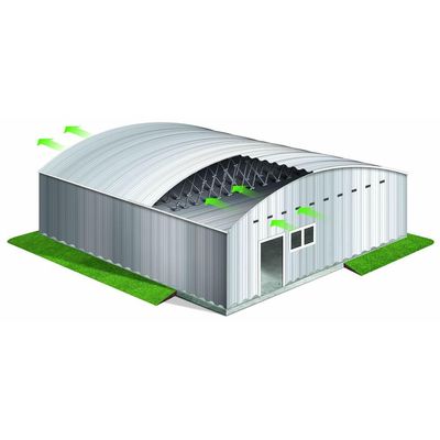 Ideally suits to rinks, arenas and other recreational facilities. The frameless convex style offers surprisingly low-cost construction for clear spans up to 100 metres. A lightweight strut system separating the roof and ceiling provides partial load stability. Electrical lines can be hidden in the attic area, providing clean, clear surfaces for maximum appeal.