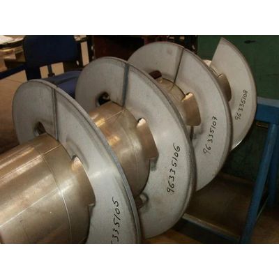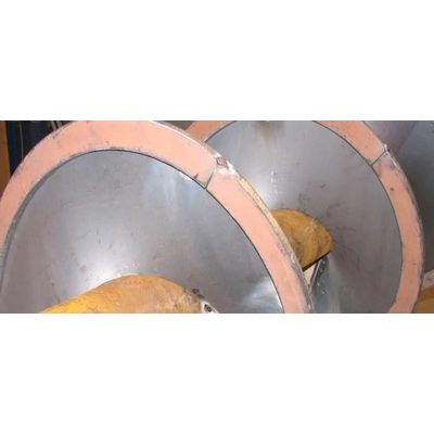 Wear plates welded on to ordinary screws, e.g. Hardox 450, Creusabro 4800 or Hardox 500, make the feed screw particularly durable. The plate is tailor-made to customer specifications. The wear plate is welded on to that part of the flight where wear is greatest. It is easy to replace the wear plate later as a spare part.