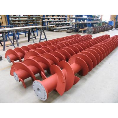 Archimedean screw rotor: Designed for sludge. Outer diameter: 1094 mm. Inner diameter: 711 mm. Pitch: 880 mm. Double threaded. Flights are manufactured in 180° segments in 8 mm thickness. Manufactured in standard steel. Coated with epoxy - Sigmashield 880.