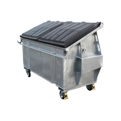 Manufactured according to DIN 30 738 /. EN 12 574. Hot dip galvanized. With crimped sidewalls. Easy maneuvering even on rough surface with castors (2 swivel, 2 fix). Fork-lift pockets (welded) made of 6 mm steel sheets. Lid with swinging bracket.