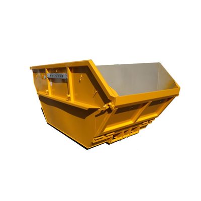 Manufactured according to DIN 30 720 for chain-loader systems asymmetric;. Bottom plate 6 mm. Side wall plates 4 mm. Welded inside and outside without holes,. Sheer rail for higher stability;. Perforated strip (galvanized) for load safety,. Heavy duty tipping profile,. Edges double welded, triple tipping device on both sides; set of net hooks welded all around,. Primed and coated in RAL colour of your choice.