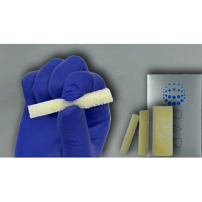 Demineralized Cancellous Sponge compresses to fill virtually any defect and expands after placement to conform to the defect space. It maintains the biocompatibility of human bone, assumes characteristics of sponge by absorbing saline, blood, or bone marrow aspirate.