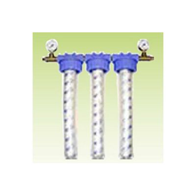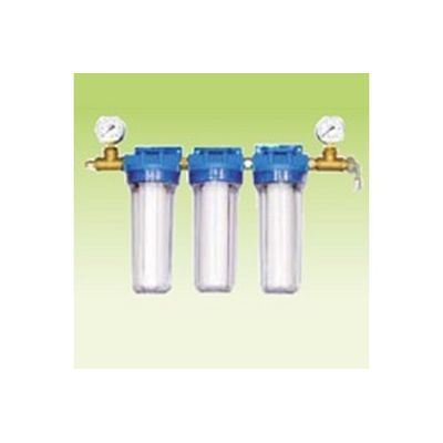 3x10” housings, 3 filters. 5,10,25 microns. Max flow 25 liters per minute. Max working pressure 6 Bar. Entry and output size is slip-lok 12 mm. Weight 5.7 kg.