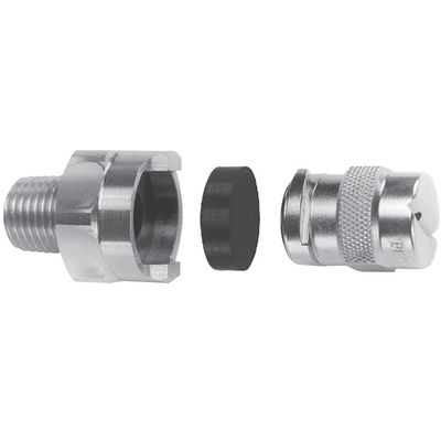 Designed for effective impact and even spray distribution. Ideal for conveyor belts when washing, coating, or wetting is required. Fan spray nozzles are either axial or deflector style. Learn how you can change nozzles in seconds without using any tools. BETE EZ Quick Connect is a three-piece nozzle design with a base, gasket, and interchangeable nozzle tip. Automatic nozzle alignment takes place upon insertion for easy installation.