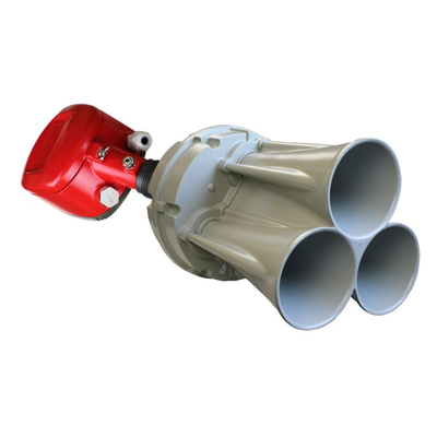 IECEx/ATEX 3D acoustic level sensor RL - standard with 7.67” diameter horn, 20-32 VDC, 4-20 mA output, Modbus, and RS-485 communications. Determines the average volume of stored materials based on a 15º beam angle in silos up to 14’ diameter and 200’ tall. Unit comes with internal LCD display and 3DVision software. Hazardous location approved for European Union and global applications. One-year warranty.