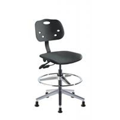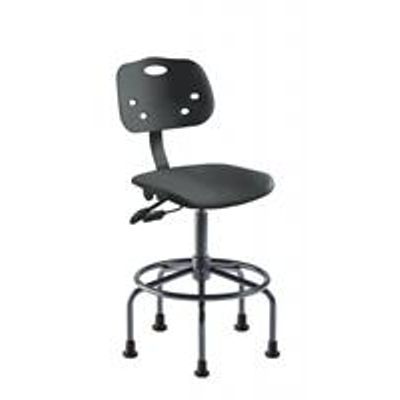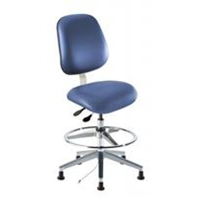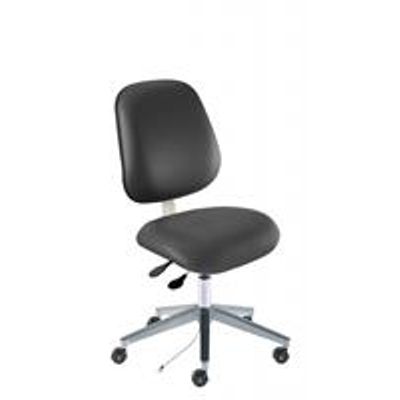 This Amherst Series model rated for ISO 4 clean room use combines a larger saddle-shaped seat and backrest with ergonomic functionality for enhanced user comfort. Designed for desktops and benches 30”-34” high, this technical chair also features a steel base with affixed footring.