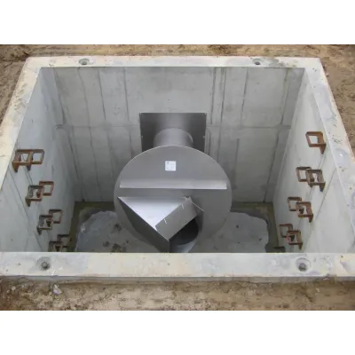 The Vortex Regulator Type WAB by Biogest is engineered for precise flow management during storm conditions. These flow regulators are integral to managing discharge from storm water retention systems, ensuring consistent output irrespective of water head variance. This system is notable for its robust construction and absence of moving parts, minimizing blockage risks and enhancing reliability. Installed within the outlet openings of storage systems, the regulator employs a vertical vortex design, where water entering tangentially creates a vortex as it ascends under storm conditions, regulating flow effectively. Water elevation triggers the vortex effect, reducing flow rate without physical barriers to the outlet. This design includes variants such as the WAB-UCY, which mitigates the need for a separate manhole, and the WAB-CE/V, a vertical model suited for rainwater flow limitation.
