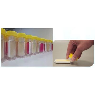 Tests designed to determine presence of bacteria and fungi in solid, semi-solid and liquid samples. Dip-slides are intended use for the monitoring of microbial contamination in various industrial environments (hospitals, water treatment, cooling systems, production lines, food, oil and gas industry etc). Each unit is sterile, self-contained, and disposable. Dip-slides are very easy to use and easy to read. A comparison with an evaluation chart allows the user to quickly and easily read off the results, within 24-72 hours. Each unit consists of an incubation tube and two-sided paddle with the same or two different media on it. The test can be performed on-site, or the slides can be used as convenient transport media for samples.