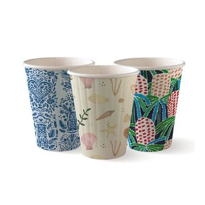 Cup artwork might differ as we feature different artists every 3 months. Pictured here are designs from the latest Art Series. Unfortunately, we cannot sell individual art cups and cannot guarantee which prints, or which series of prints will be in each carton.. We make the ordinary extraordinary by offering the humble paper cup as a canvas to promote talented artists and connect consumers to the environment. Check out #biocupartseries on Instagram to see our vibrant community.. BioCup double-wall disposable coffee cups are designed with an extra layer of paperboard and a textured pattern for additional insulation to protect consumers.. BioCups are made from paper sourced from managed plantations and lined with PLA – a bioplastic made from plants, not oil.. We use a heavy-duty, premium quality board giving our paper coffee cups superior stability, better lid fit and insulation.. A more economical and eco-friendly solution than double-cupping extra-hot drinks..