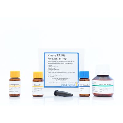 Kinase RR Kit or Kinase Reaction rate Kit is developed for the easy and reliable identification of protein kinase inhibitor candidates from large compund libraries. The Kinase RR Kit uses direct bioluminescent measurement of ATP degradation rate to distingusih hits from non-hits. In contrast to other bioluminescent ATP based assays of kinase there is no interference from inhibitors acting on luciferase. Furthermore the standard curve is linerar rather than sigmodial. the Kinase RR Kit is flexible and can easily be adapted to various HTS strategies. Z’ values up to 0.96 have been reported. The assay does not require radioactive materials, antibodies or any form of conjugates.