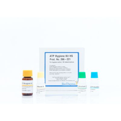 The ATP Hygiene Kit HS is suitable for hygiene control of surfaces and liquids (e.g. rinsing water). Practical dropper bottles makes the kit easy-to-use, even for personel not used to handling pipettes. ATP measurement is an excellent way of controlling hygiene, as ATP is found in food residues and other biological dirt as well as living cells. Even though a surface might be sterile (sterile=no bacteria are present) there might still be food residues left after cleaning. Such residues maks an excellent environment for airborne bacteria to grow and in a few hours the surface will no longer be sterile. With the ATP Hygiene Kit HS you can determine not only how many living organisms are present, but also the amount of biological dirt.