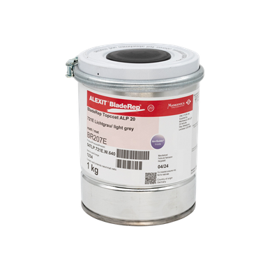 ALEXIT® BladeRep® Topcoat ALP 20 is engineered to augment the efficacy of lightning protection systems for wind turbine blades. Using ArcGuide® Technology, it manipulates the electric field around the blade surface, promoting robust leader formation from the lightning receptor, thereby increasing the probability of lightning strikes targeting the receptor instead of causing damage to the blade itself. Meant to reduce lightning strike damage by 73%, it has been verified through IEC 61400-24 standard tests. The applied benefits include increased lifespan of blades, with verified dependability on working windfarms. Its rollable application is facilitated by a two-chamber can, designed for speedy and direct application on-site. Field and laboratory tests confirm its capability to lessen the risk of lightning damage, offering an advanced protective measure for blade longevity.