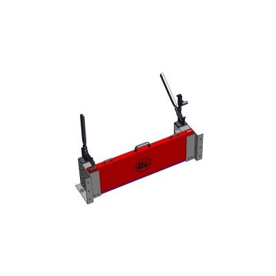 The Retention Barrier forms the basis for a modular system for incremental build-up for stationary systems with rotating capability on one side, manual or automatic versions. Suitable for crack-free surfaces with up to 20 mm (± 10 mm) of floor/ground unevenness, e.g. concrete, corrugated sheet metal, tiles, stones, etc. The Retention Barrier is comprised of a trapezoidal, integral hollow aluminium profiled body. A compressible, highly adaptable special seal is affixed to the lower side and end faces.