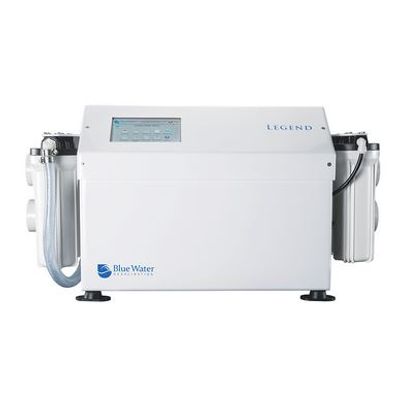 Available capacities range from 475 GPD to 1850 GPD (1,800 LPD to 7,000 LPD).The Blue Water Legend series uses leading-edge technology to provide fully automatic operation. The systems feature a 7” full-color touch screen that provides an intuitive interface between the user and the system. The main screen allows for one-touch start and stop functions while the proprietary software continuously monitors and adjusts the system to maximize water production and quality.