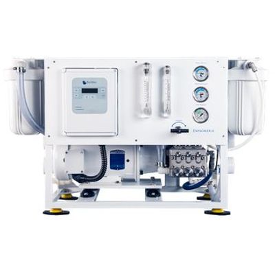 Available capacities range from 475 GPD to 1800 GPD (1,800 LPD to 6,810 LPD). The Blue Water Explorer series of watermakers offers semi-automatic operation in a wide range of capacities to fit the needs of most mid to large-sized yachts. The system is operated by traditional switches and a manual high-pressure valve. An electronic controller automatically diverts product water to the storage tank and an LCD screen indicates product water salinity and system status. The Explorer series includes a Fresh Water Flush system as standard.