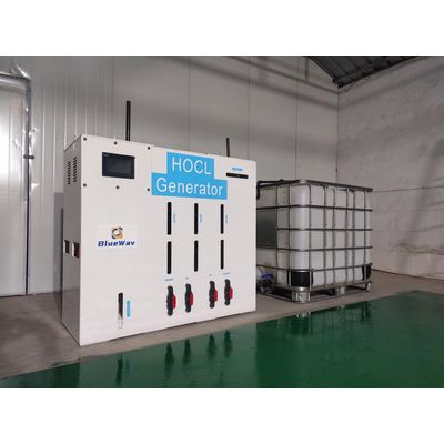 Main Features: Input: Salt, Electricity, Water. Output: HOCL Anolyte: 50-100ppm, 100-2000ppm. PH: 6-7 adjustable. ORP:1000-1200mV. Clean hocl solution. Certificate: ISO, CE.