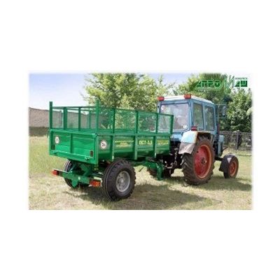 The tipping semi-trailer PST-3,5 with rear unloading is designed for transportation of different building materials, bitumen, concrete mixture and agricultural loads. The semi-trailer is aggregated with wheeled tractor of 0,6 drawbar category with drawbar device, output of the hydraulic system and socket for connection of electrical equipment. It’s possible to use the semi-trailer in all soil-climatic zones except mountainous ones. The trailer has a single axle and block brakes. Optionally the semi-trailer can be equipped with additional sides.