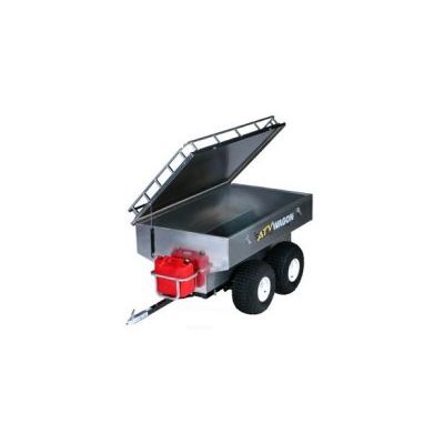 Trailer Features: Four wheel independent suspension and huge 25` tires to float over rough terrain. This is no wimpy `walking beam`, it is a true Torsion Bar Axle which maintains a smooth and safe ride. Heavy duty axles give you the capacity for almost 1360 lbs of cargo. With safety in mind, the 2000 Utility trailer features electric brakes to provide the stopping power you need to control big loads and comes complete with a brake/tail light. Dumping your cargo with the Power RAM lift is as easy as pushing a button right from the seat of your UTV. We know the fancy features aren`t all that`s important, a high-performance trailer needs to be just as dependable as it is powerful. That`s why we put rust resistant powder coat on every trailer we build.
