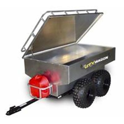 The ATV trailer`s lightweight aluminum body is sealed to protect your valuable cargo while keeping the dust and water out. Thanks to a fully TIG welded body and weather sealed lid, your gear is well protected and stable over the roughest of terrain. High performance features you will not find in any other ATV trailer such as independent suspension and huge 25` tires. To complete the package, there’s a gas shock on the hinged lid for easy opening, a cargo rack, locking latches, tie down `D` rings, a taillight/brake light and a fuel can holder. Check it out, you can`t find another UTV pull behind trailer with all these features-anywhere!