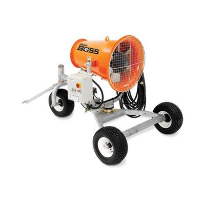 The DustBoss DB-30 is a compact, fan-driven dust suppression system, capable of covering half of an American football field in light, atomized mist using just a standard garden hose. This nimble unit comes mounted on a wheeled carriage standard, allowing readjustment without additional equipment.