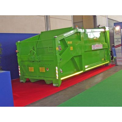 The drawer compactors produced by BP Metalmeccanica are ideal equipment for the reduction of the volume of any type of bulky refuse (paper, cardboard, plastic, wood, metal containers, etc. ...) considering a large saving in transport costs and cleaning in storage areas. They are built with quality steels in the form of trunk / conical to facilitate the emptying of the waste. The operation in connection with electro-380V. can be automatic, semiautomatic or manual. The cabinet is equipped with PLC and approved to EEC standards. The hydraulic power unit with 10 hp engine allows you to develop compaction force of 25 and 50 tons. with a maximum working pressure of 200 bar. The upper hatch operates hydraulically with connection to the means of transport`s system.