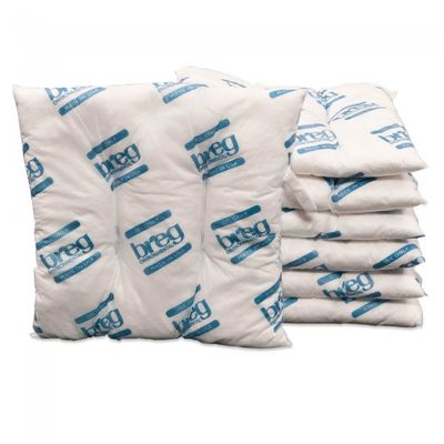 A great all-purpose absorbent for plant maintenance. Breg’s soft, flexible and very thirsty, Basic Pillows quickly absorb just about any non-aggressive chemical or water-based fluid. The larger surface area provides faster “sucking” action and contains larger spills. Pillows are easy to retrieve and can be wedged into tight spaces or hard-to-reach areas like sumps and catch basins. Pillows can be incinerated after use to reduce waste or for fuels blending. 10" W x 10" L, 30/Case.
