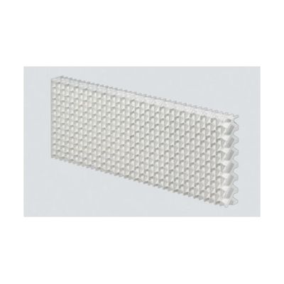 Optimal heat transfer properties; low pressure drop; Generally, every cross fluted fill could be cut to be installed in a cross-flow cooling tower. Such a fill, however, would not perfectly fit the requirements; we therefore developed a special range of fill for this type of tower (FX12.12 or KSN with a drift eliminator section KSA and air inlet louvre section KSB).Drift Eliminators
