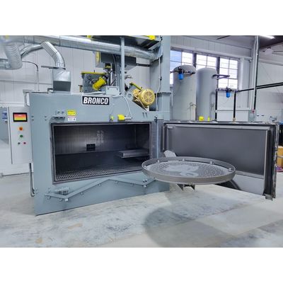 Bronco Table Blast Machines efficiently clean and continuously process a variety of part shapes and configurations, including castings, fabrications, forgings, and weldments. Available in swing table or fixed table configurations, Bronco Table Blast Machines feature heavy-duty construction engineered to withstand the most rigorous manufacturing environments. All Bronco Table Blast Machines are fully integrated with abrasive reclaim, air wash separation, and armor plate lining systems. A variety of table sizes, clearance, and capacity options deliver the reliable, high performance that comes with the Bronco name.