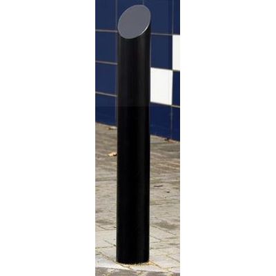 Steel bollard with slanted top and galvanized steel body. Powder coated in a single Broxap colour.