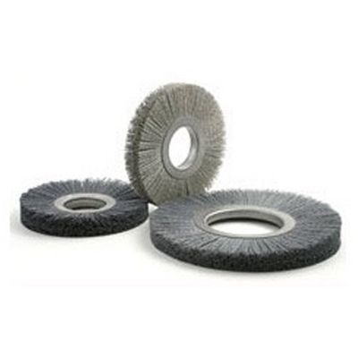 6" - 10" Diameters. Wheel brushes are excellent for light deburring, edge blending and general surface finishing. Abrasive nylon wheel brushes are safe, non-reactive and offer an excellent alternative to traditional steel filament brushes for extrusion cut-off burrs and mount on most pedestal grinders. Please consult the abrasive filament chart for other grits and abrasive types.
