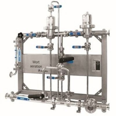 Air / Oxygen is injected into wort through Inline DENWEL Injector, which splits the gas into micro bubbles. Most efficient and instant saturation is achieved with minimal pressure drop and no gas loss. Fully hygienic CIP design. No static mixer or sinter candles needed.