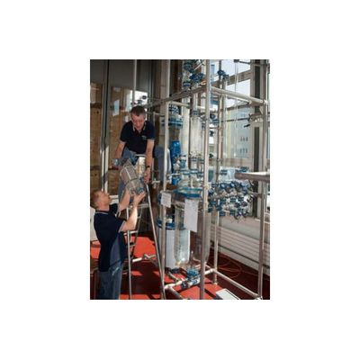 Chemical process equipment consisting of glass-lined reactors or mixing tanks with distillation overhead in borosilicate glass can be operated at full vacuum and low pressure. A large variety of chemicals can be processed in such plants due to the highly corrosion resistant materials used. The design varies between multipurpose product / process specific set ups. Feeders and receivers are made of glass for smaller units and of glass lined steel for larger setups. Shell and tube type heat exchangers are built with inner tubes made of borosilicate glass, glass-lined steel, silicon carbide, tantalum or other metals depending on process parameters and other requirements. Such reactor configurations are used for chemical synthesis, distillation, reflux distillation, solvent recovery, rectification and other processes.