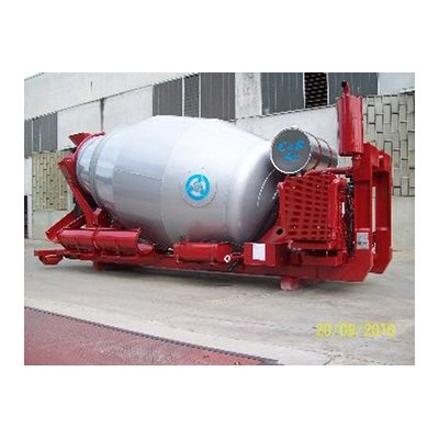 Concrete mixers demountable Capacity 7-8 cubic meters complete with auxiliary motor, batteries, fuel tanks, chute with two extensions from 1 mt scale access hopper.