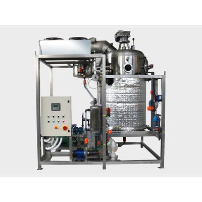 Higher concentration: This evaporator guarantees a higher concentration of the liquid treated, with the aid of a wall scraper system with a lower blade driven by a gear motor. Volumes to be treated up to 1500 lt/g. Volumes processed up to 1500 lt/day.
